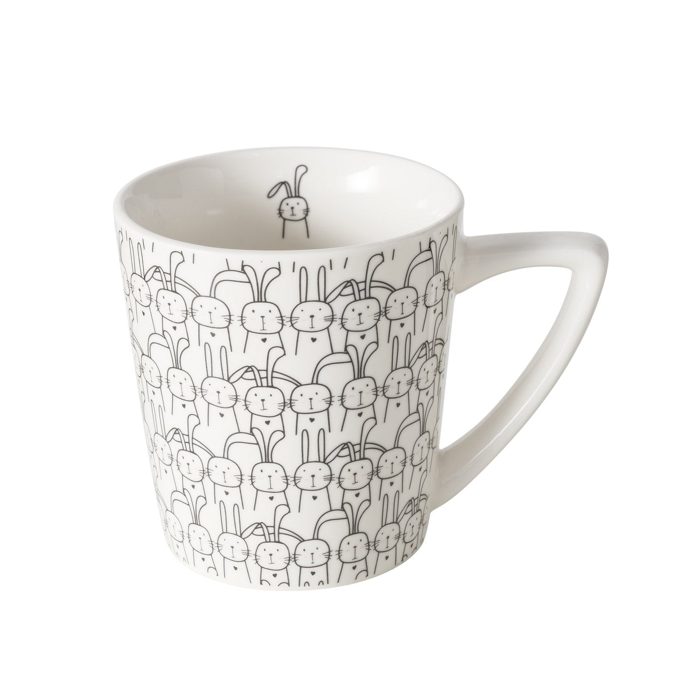 Der niedliche Hasenbecher Hoppy aus hochwertigem New Bone Porzellan ist das perfekte Accessoire für Teeliebhaber und Hasen-Fans. Mit einem Fassungsvermögen von 300 ml und praktischem Henkel liegt er angenehm in der Hand. Das Modell besticht durch sein charmantes Design: Mehrere kleine Hasen zieren die Außenseite in klassischem Weiß und Schwarz, während die Innenseite mit einem süßen Hasen mit Stehohren am Becherrand verziert ist. Aus der exklusiven Boltze Eigendesign Collection – ein hochwertiges Stück mit Charakter für den täglichen Gebrauch.