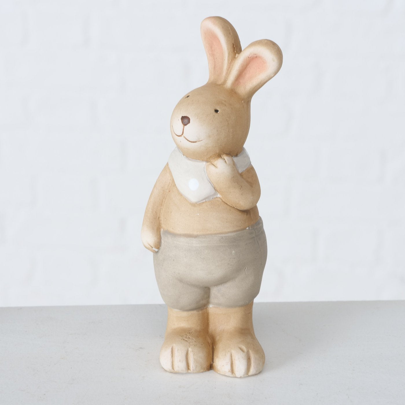 Süße Hasen Figur aus Terracotta in warmen Beige- und Brauntönen – das Modell Billy aus der Boltze Eigendesign Collection. Diese charmanten Dekofiguren eignen sich perfekt für Tabletts, Fensterbänke und Regale und bringen frühjährliche Eleganz in jeden Raum. Mit zwei verschiedenen Varianten zur Auswahl, lassen sich individuelle Arrangements gestalten.