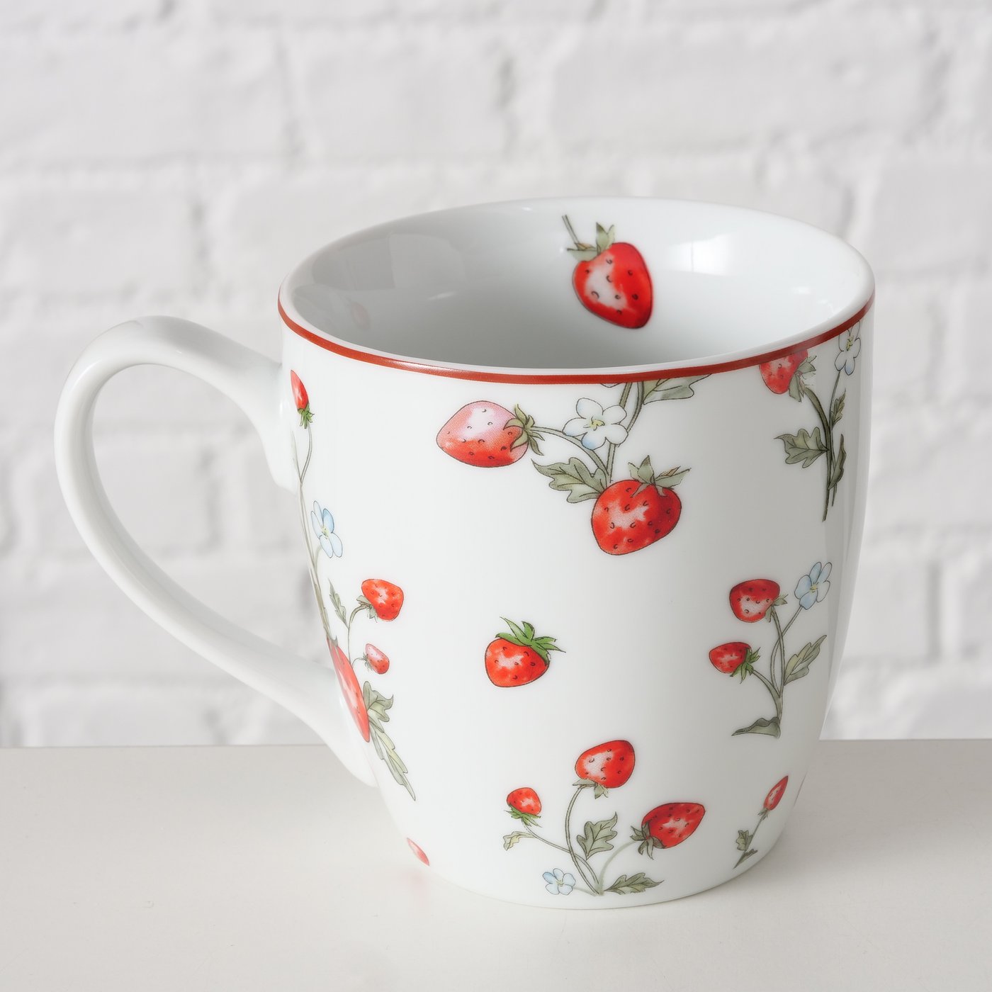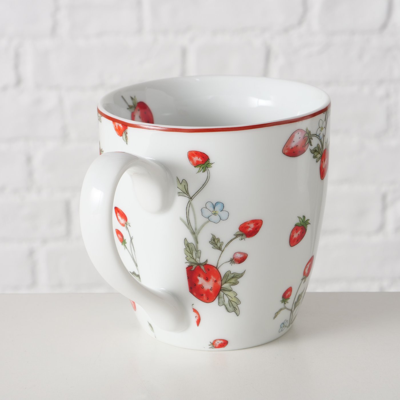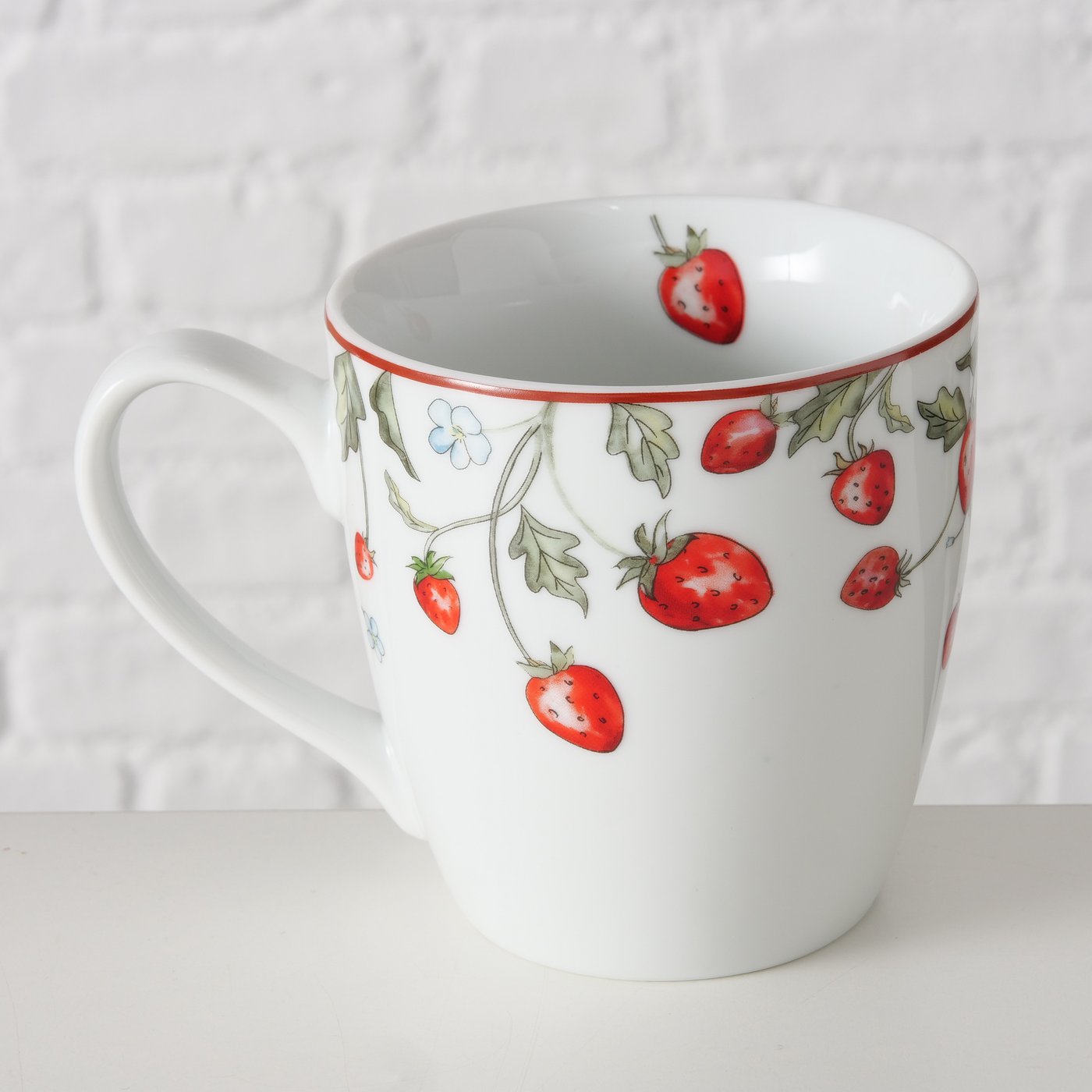 Der Boltze Keramik Jumbobecher Emily mit Erdbeer Design verbindet Funktionalität und Ästhetik für den täglichen Gebrauch. Mit einem Fassungsvermögen von 480 ml bietet er ausreichend Raum für Kaffee, Tee oder andere Getränke. Das auffällige Erdbeer-Motiv auf weißem Grund, akzentuiert durch einen roten Becherrand, verleiht dem Becher eine charmante Note. Dank Spülmaschinen- und Mikrowellenfestigkeit ist er besonders alltagstauglich.