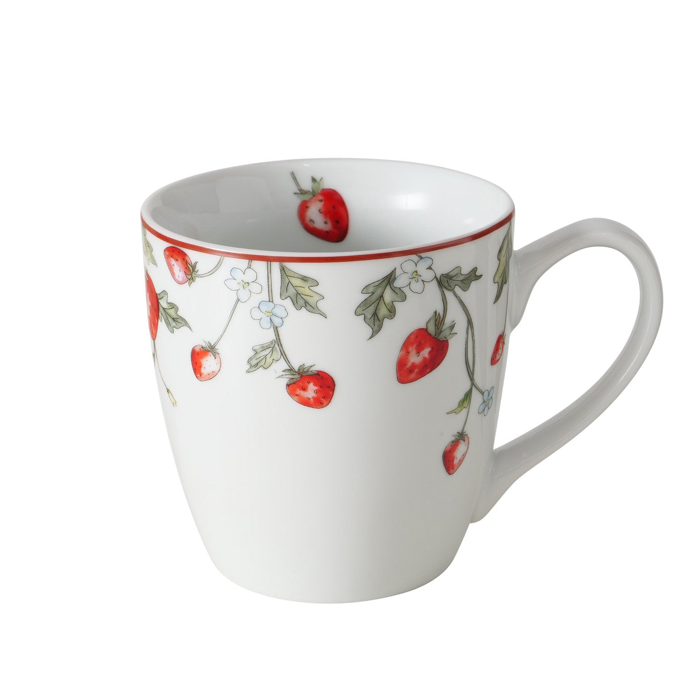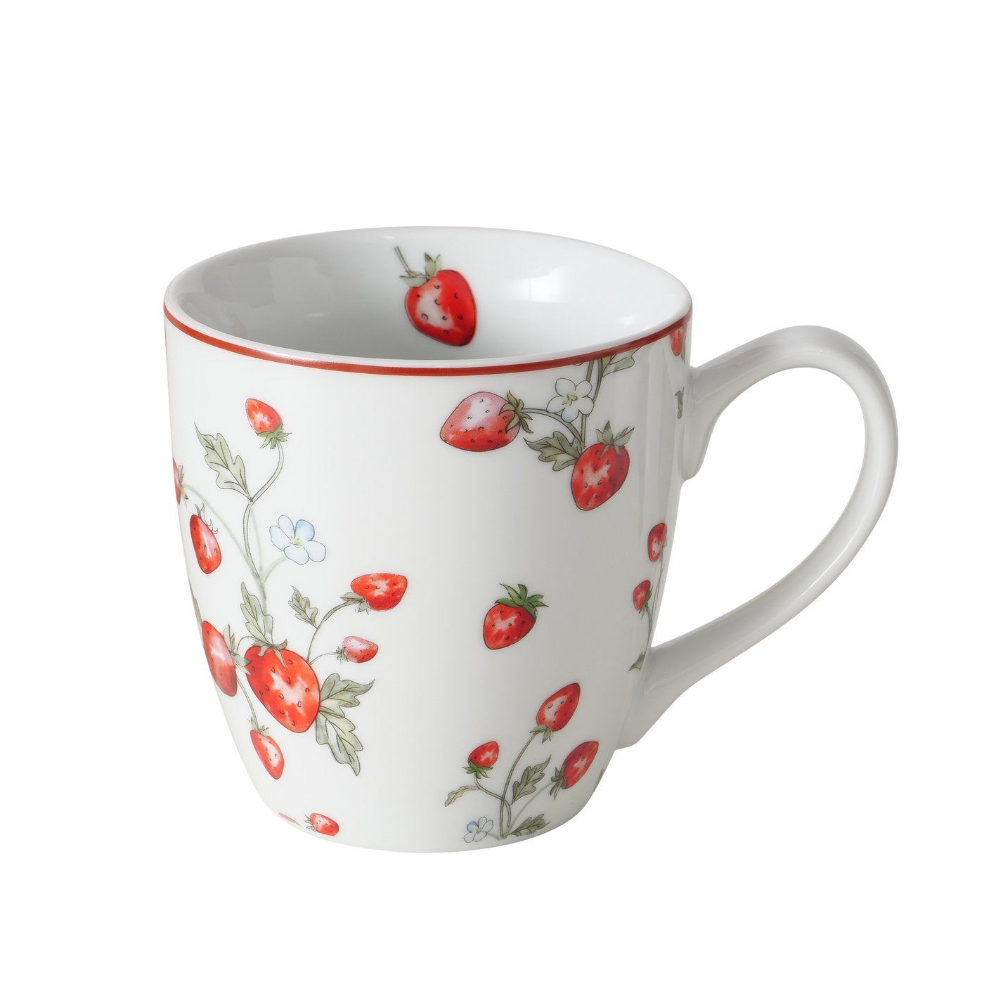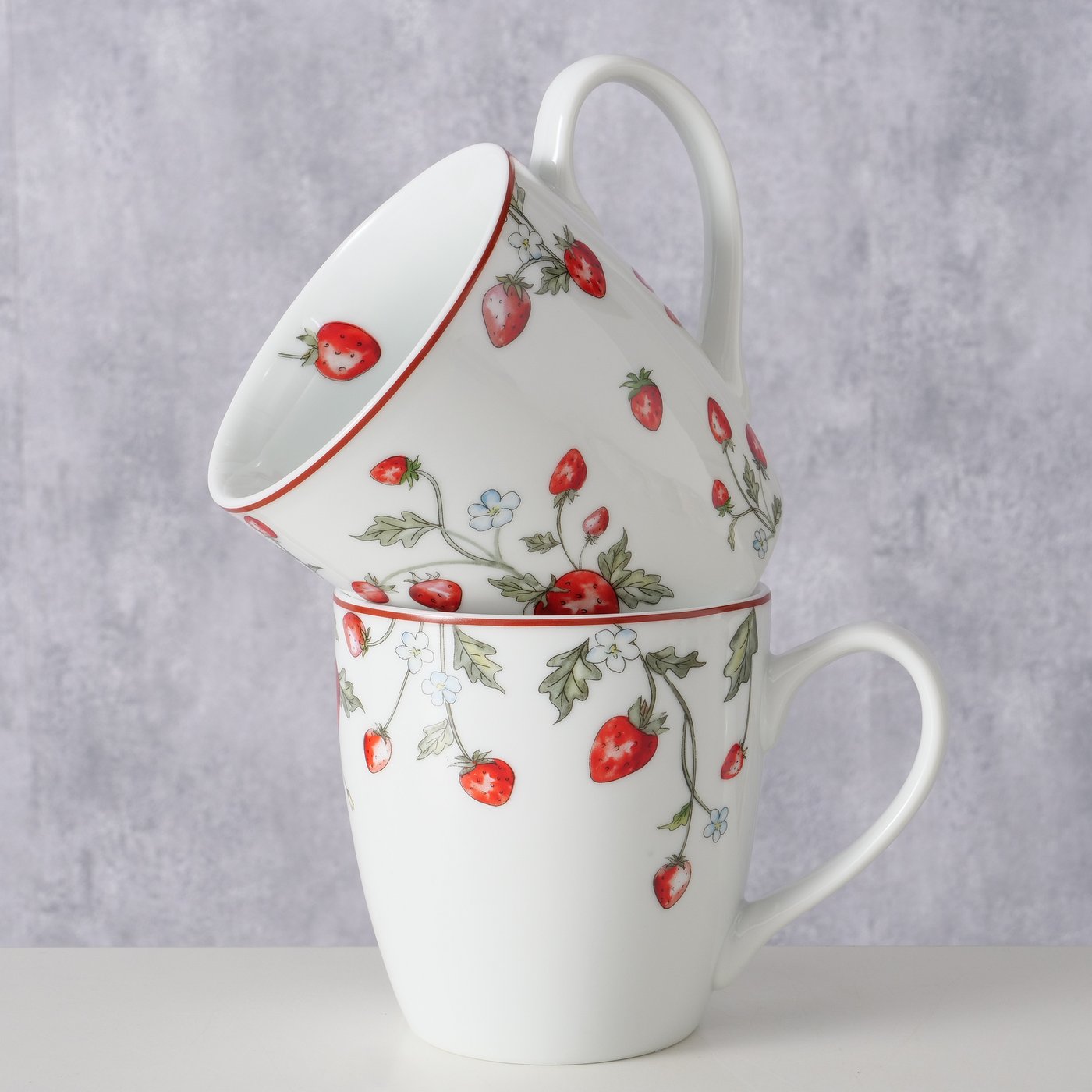 Der Boltze Keramik Jumbobecher Emily mit Erdbeer Design verbindet Funktionalität und Ästhetik für den täglichen Gebrauch. Mit einem Fassungsvermögen von 480 ml bietet er ausreichend Raum für Kaffee, Tee oder andere Getränke. Das auffällige Erdbeer-Motiv auf weißem Grund, akzentuiert durch einen roten Becherrand, verleiht dem Becher eine charmante Note. Dank Spülmaschinen- und Mikrowellenfestigkeit ist er besonders alltagstauglich.