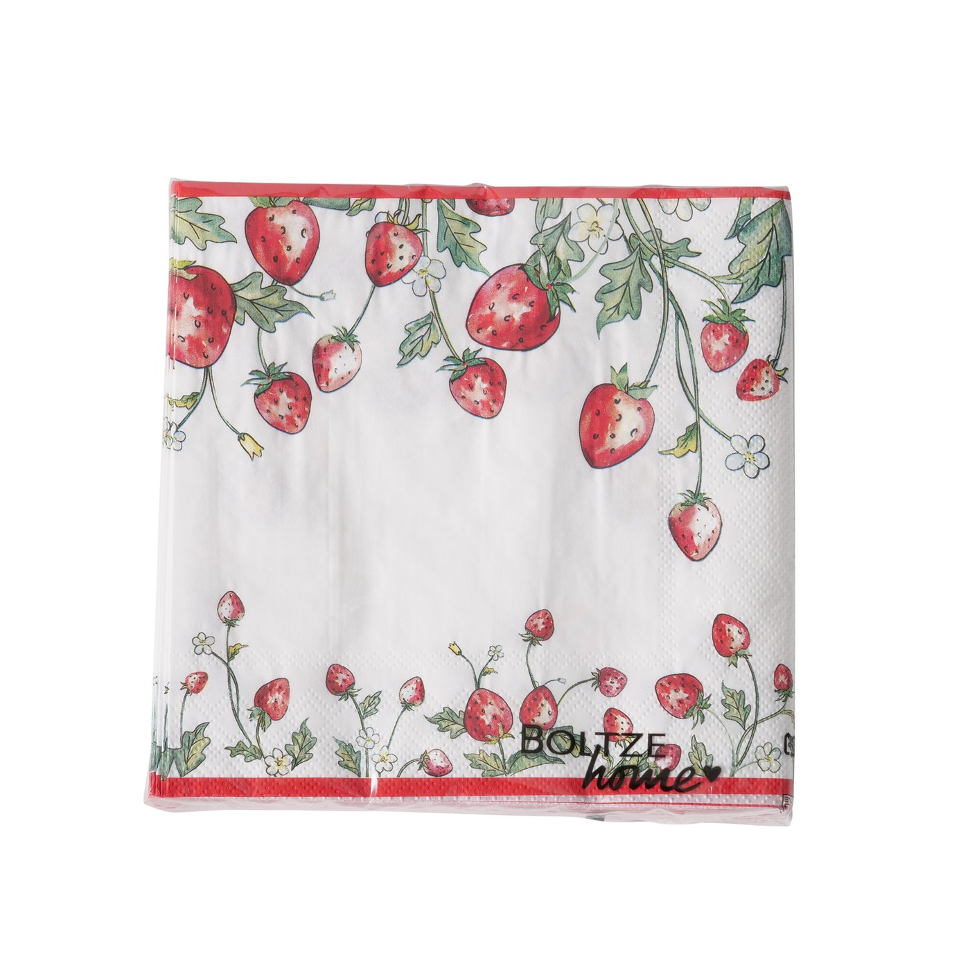 Die Boltze Papier Servietten mit dem charmanten Erdbeer Motiv verleihen jeder sommerlichen Tischdekoration eine lebendige, fröhliche Atmosphäre. Das Set umfasst 20 Papier Servietten in den Farben Weiß, Rot und Grün, jeweils 33 x 33 cm groß. Ideal kombinierbar mit dem Jumbobecher Emily, bieten diese hochwertigen Servietten von Boltze Home nicht nur Funktionalität, sondern setzen auch einen attraktiven Akzent auf jedem gedeckten Tisch. Genieße mit diesen Fruchtigen Servietten den Sommer und eine erfrischende Note in deinem Zuhause.