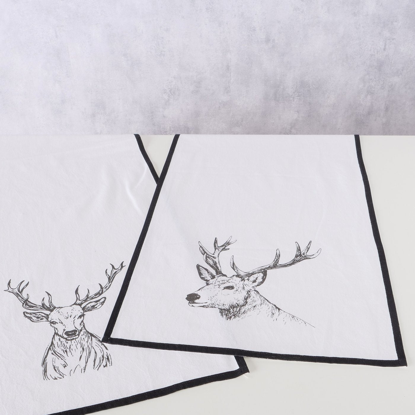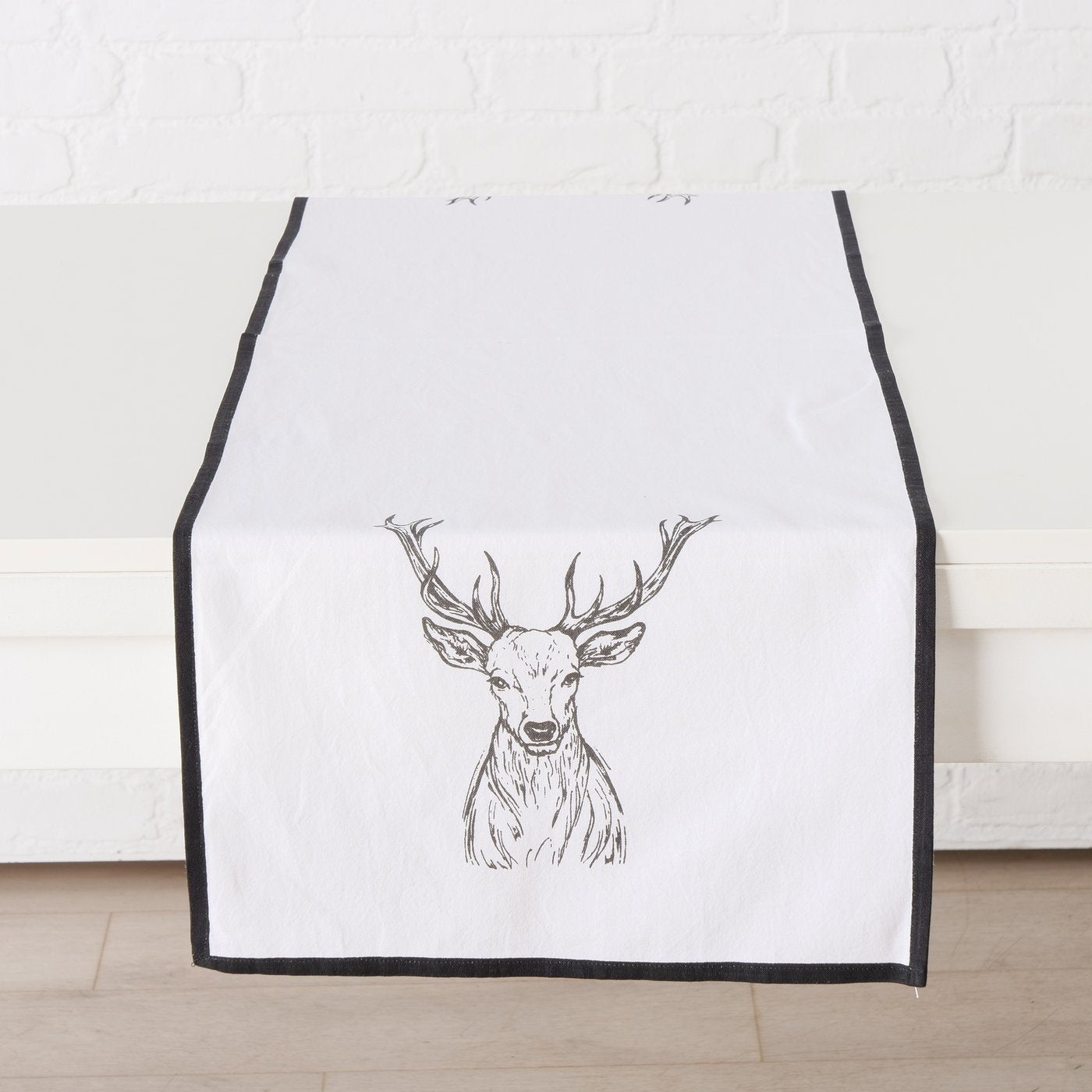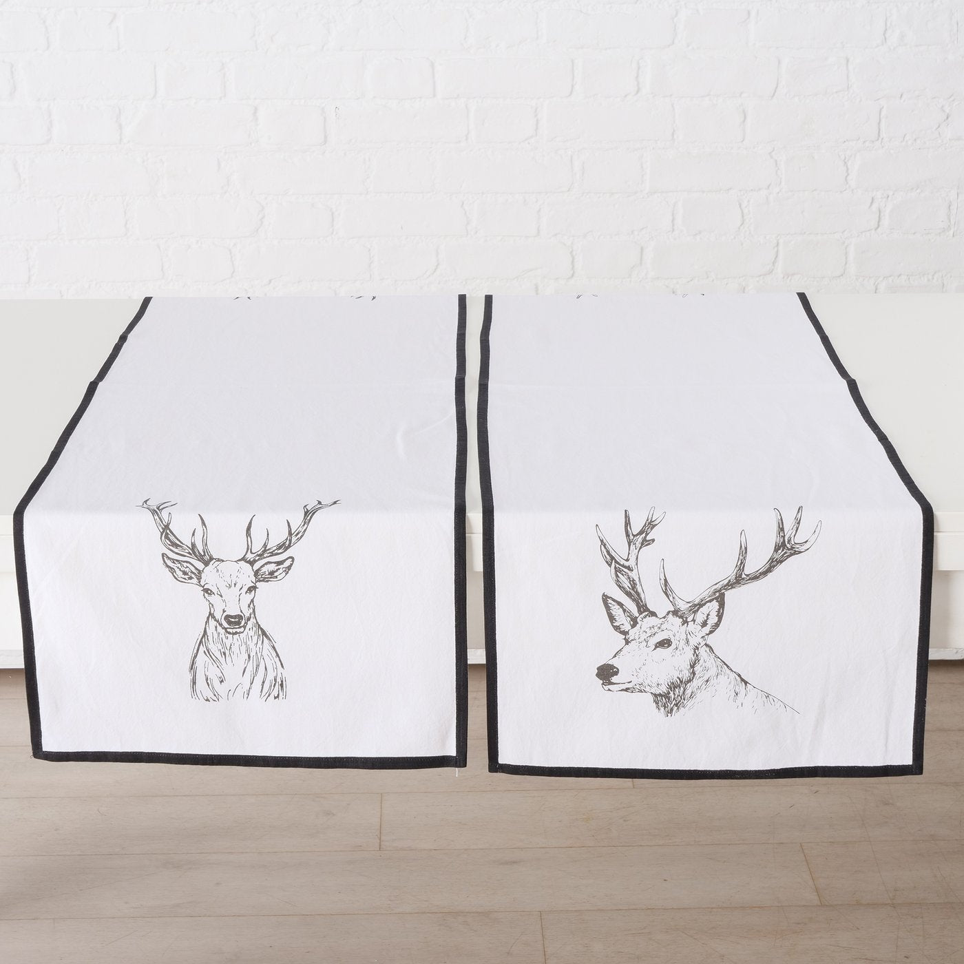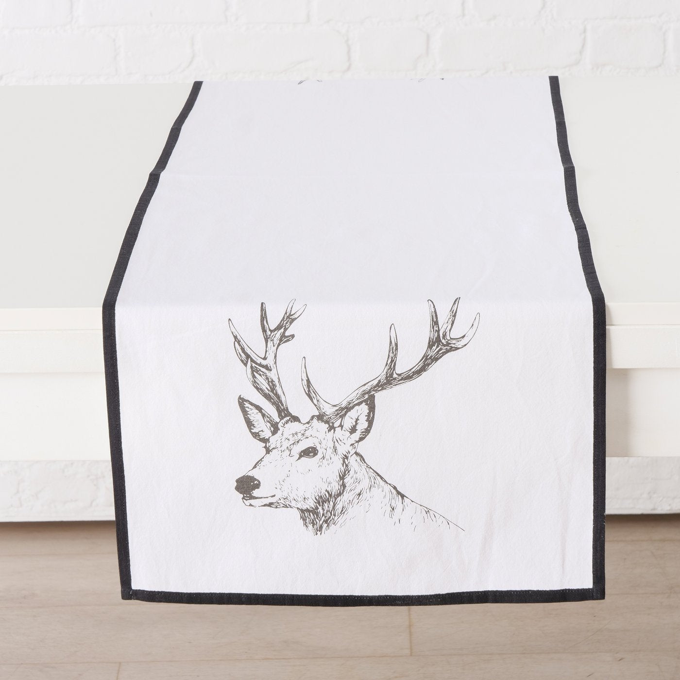 Lieferumfang: 1 Tischläufer Hirsch Silhouette in weiß schwarz