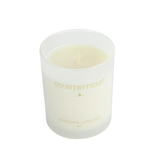 Die Countryfield Soja Duftkerze aus der Ambiance Collection Spa schafft mit ihrer frisch-warmen Duftkomposition aus Orange, Mandarine, Bergamotte, Minze, Ingwer, Kardamom, Jasmin und Zeder eine beruhigende Wellness-Atmosphäre. Das rußarme Sojawachs garantiert eine lange Brenndauer von etwa 35 Stunden und verteilt den Duft besonders schnell und gleichmäßig. Geliefert im eleganten weißen Glas mit goldenem Schriftzug, vereint diese Kerze Nachhaltigkeit und Stil für entspannte Stunden zuhause.