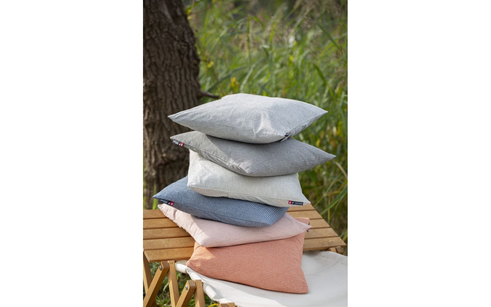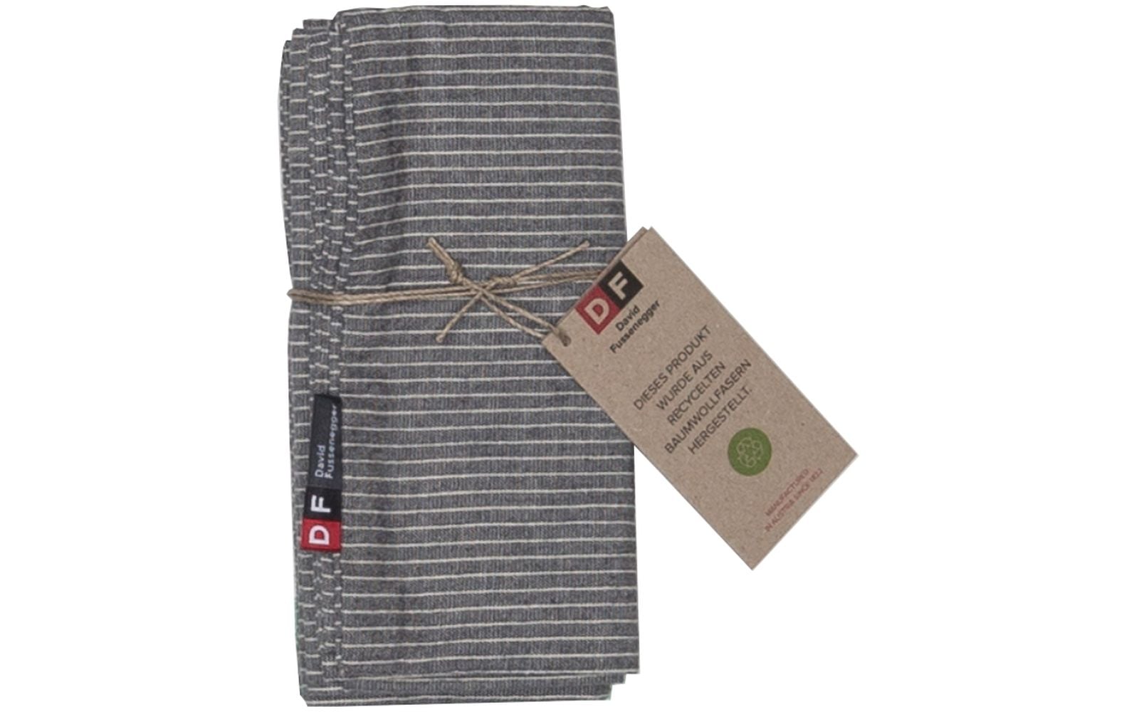 Dieses 2er Set Kissenhüllen von David Fussenegger besteht aus leicht angerauter, recycelter Baumwolle und Viskose in einem grau-weiß gestreiften Design. Die Rückseite ist mit einem praktischen Hotelverschluss ausgestattet, der das Befüllen mit handelsüblichen Inletts erleichtert. Die Kissenhüllen sind vielseitig einsetzbar und eignen sich sowohl für den Innen- als auch Außenbereich.