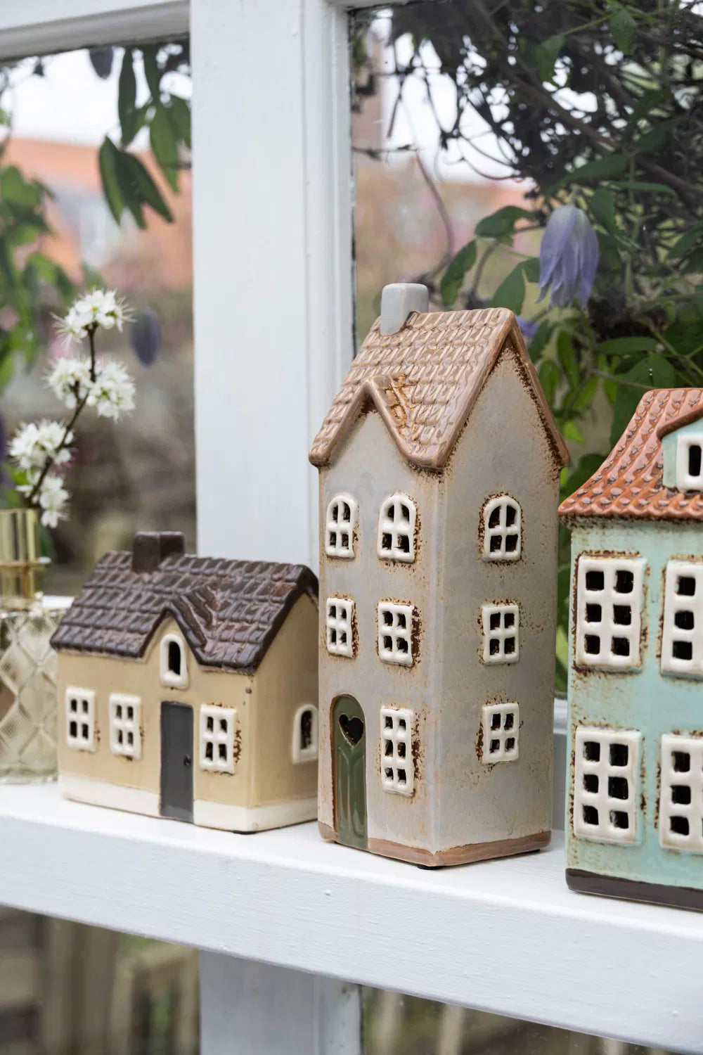 Lieferumfang: 1 Keramikhaus Teelichthalter in grau von Det Gamle Apotek