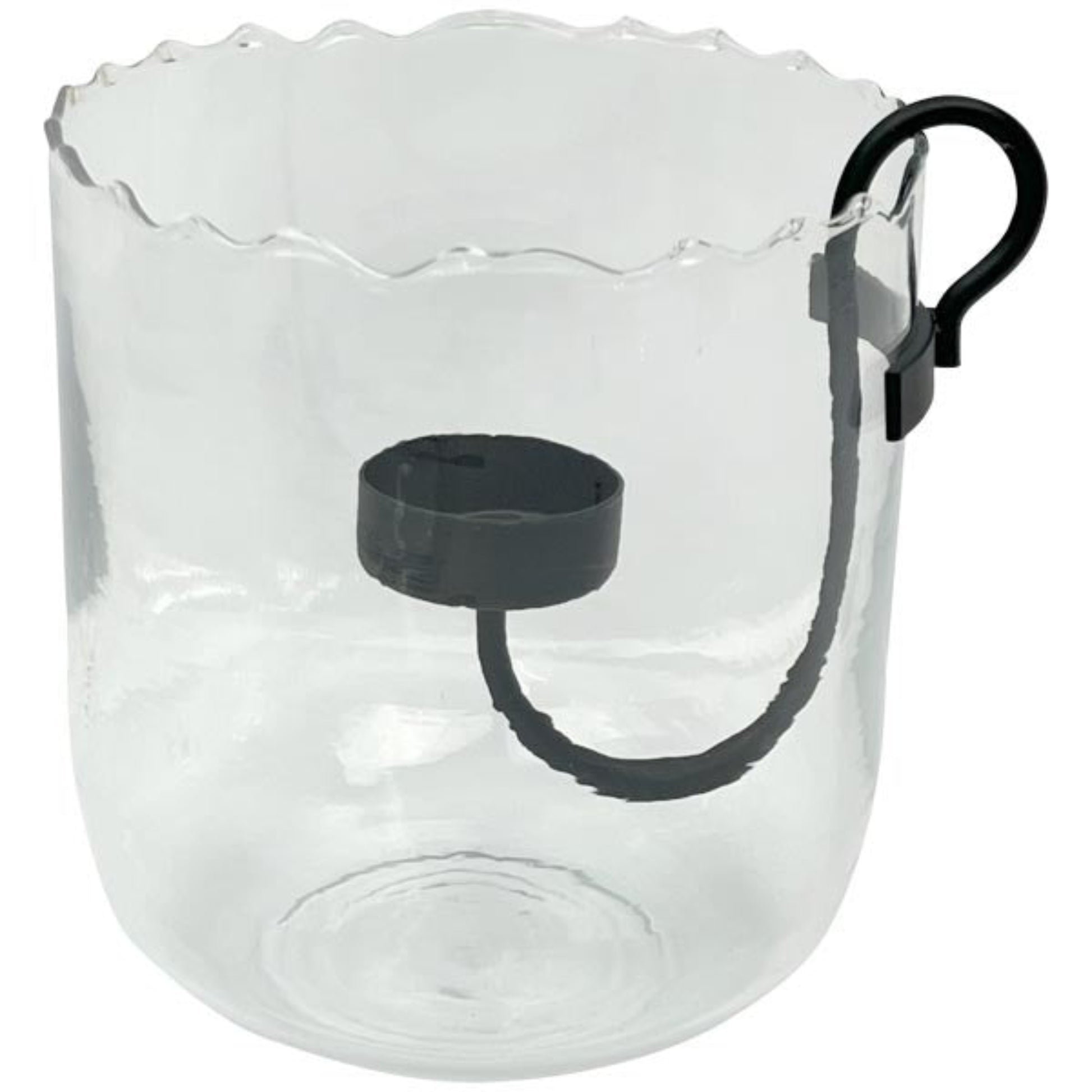 Lieferumfang: 1 Windlicht Modell Verre klares Glas mit Metalleinhänger für Teelicht in schwarz 15 cm H
