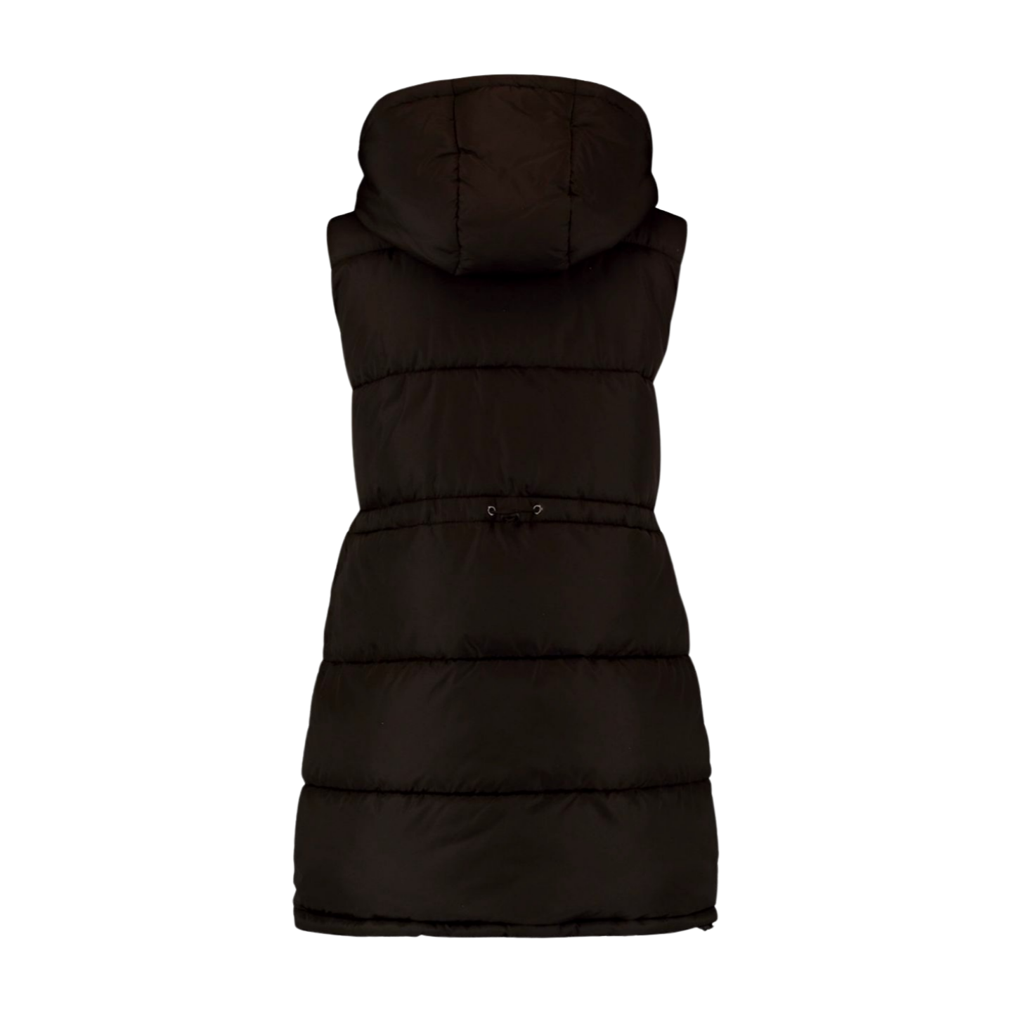 Die mittellange Steppweste von Hailys Fashion in Schwarz überzeugt mit funktionalem Design und hohem Tragekomfort. Ausgestattet mit einem Reißverschluss, zwei seitlichen Eingrifftaschen und einem Stehkragen mit Kapuze, bietet sie optimalen Schutz an kühleren Tagen. Die innen leicht mit Fleece angerauten Taschen halten die Hände angenehm warm. Ein Tunnelzug am Saum und Rücken ermöglicht eine individuelle Passform, ideal für den Einsatz im Herbst oder Frühjahr in Kombination mit einem Sweatshirt. Diese Weste verbindet Stil und praktische Details für vielseitige Outfits.