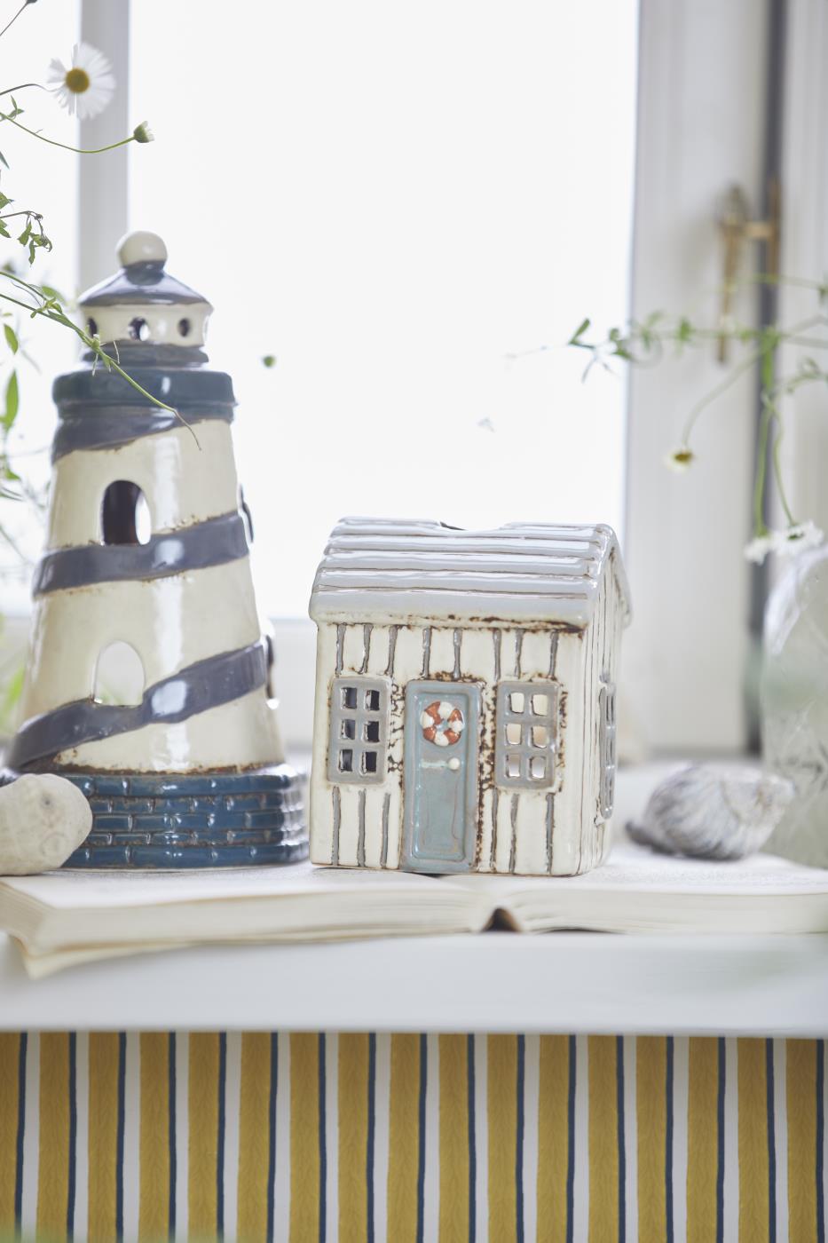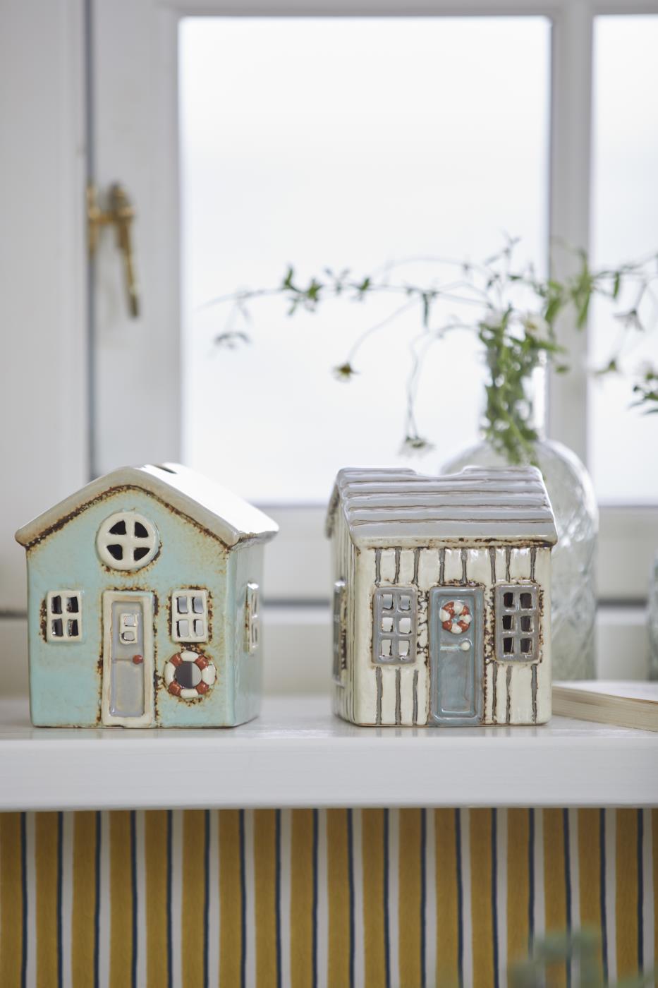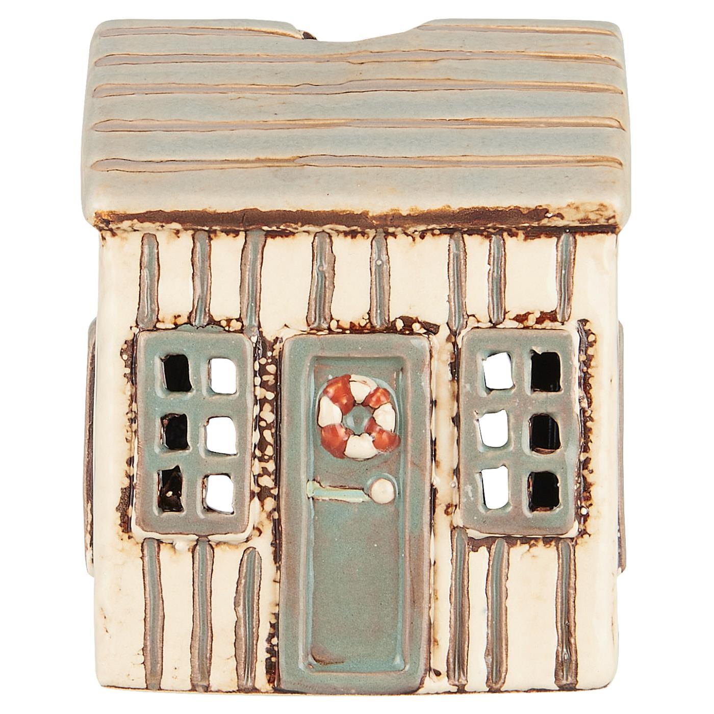 Das IB Laursen Haus für Teelicht Lokken besticht durch seine hochwertige Porzellanverarbeitung und das maritime Design. In cremefarbenem Ton gehalten, wird es durch eine graue Tür mit einem detailreich gestalteten Rettungsring akzentuiert. Ideal geeignet für Teelichter oder kleine Lichterketten, schafft es eine stimmungsvolle Atmosphäre und bringt nordischen Charme in dein Zuhause.