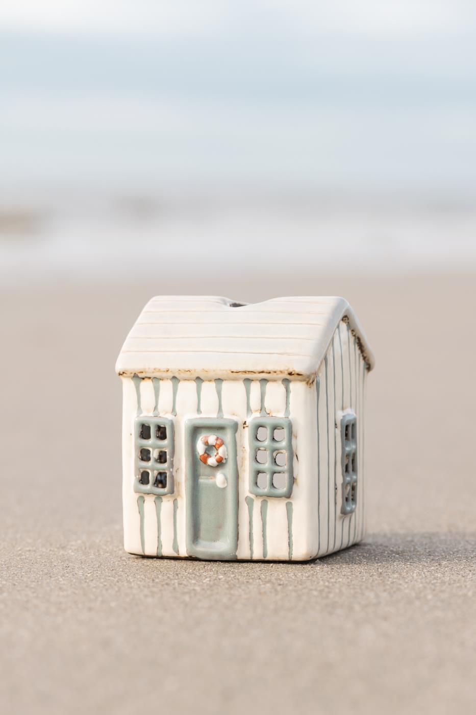 Lieferumfang: 1 IB Laursen Teelichthalter Haus Lokken in creme mit grauer Tür