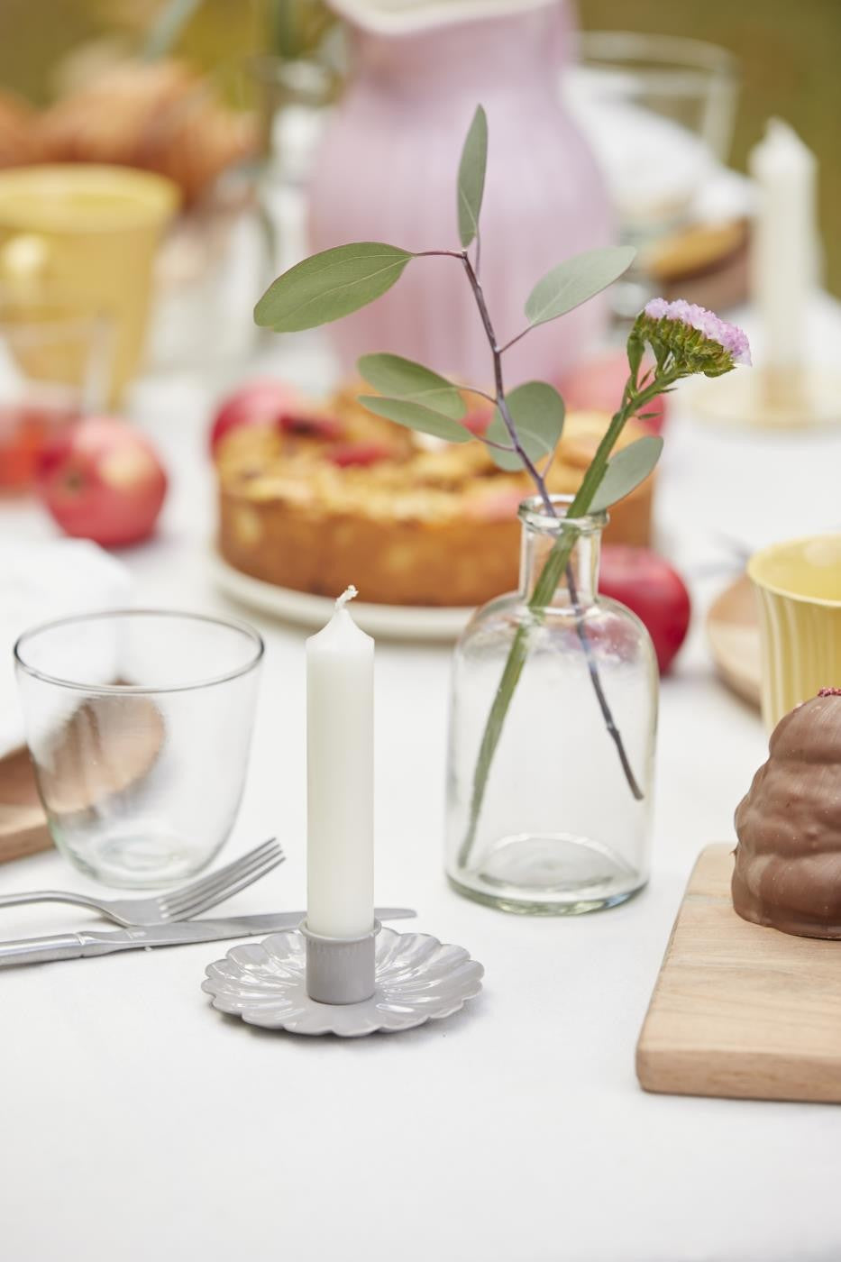 Der IB Laursen Kerzenhalter in Form einer Blume auf einem gewellten Teller in der Farbe Soil ist ein elegantes Sommeraccessoire für Ihren Tisch. Er eignet sich ideal als dekoratives Element oder als geschmackvolles Mitbringsel. Der Kerzenhalter ist für handelsübliche Stabkerzen mit einem Durchmesser von 2,2 cm ausgelegt und verbindet Funktionalität mit ansprechendem Design aus dem renommierten Sortiment von IB Laursen.