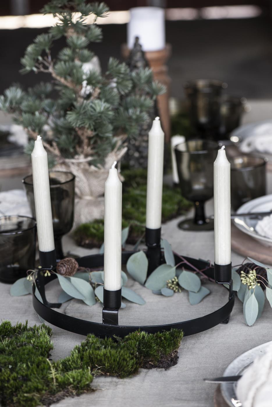 Dieser dekorative Kerzenring aus schwarzem Metall von IB Laursen ist für vier Stabkerzen konzipiert. Er eignet sich hervorragend für eine schlichte Gestaltung oder zur Kombination mit Hecken- oder Eukalyptuszweigen. Ebenso kann der Kerzenhalter auf einem Tablett mit Zweigen, Zapfen und Adventskugeln stilvoll in Szene gesetzt werden. Geeignet für Stabkerzen mit einem Durchmesser von 2,2 cm.