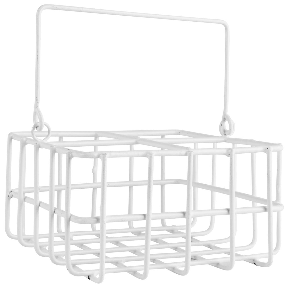 Der kompakte Korb mit Henkel von IB Laursen eignet sich ideal zur Aufbewahrung und zum Servieren von Öl und Essig am Tisch. Die vier Fächer gewährleisten einen sicheren Stand für Flaschen und Gläser, sodass sie rutschfest transportiert werden können. Der weiß beschichtete Korb misst 8,0 cm in der Höhe, 16,0 cm in der Breite und 16,0 cm in der Länge.