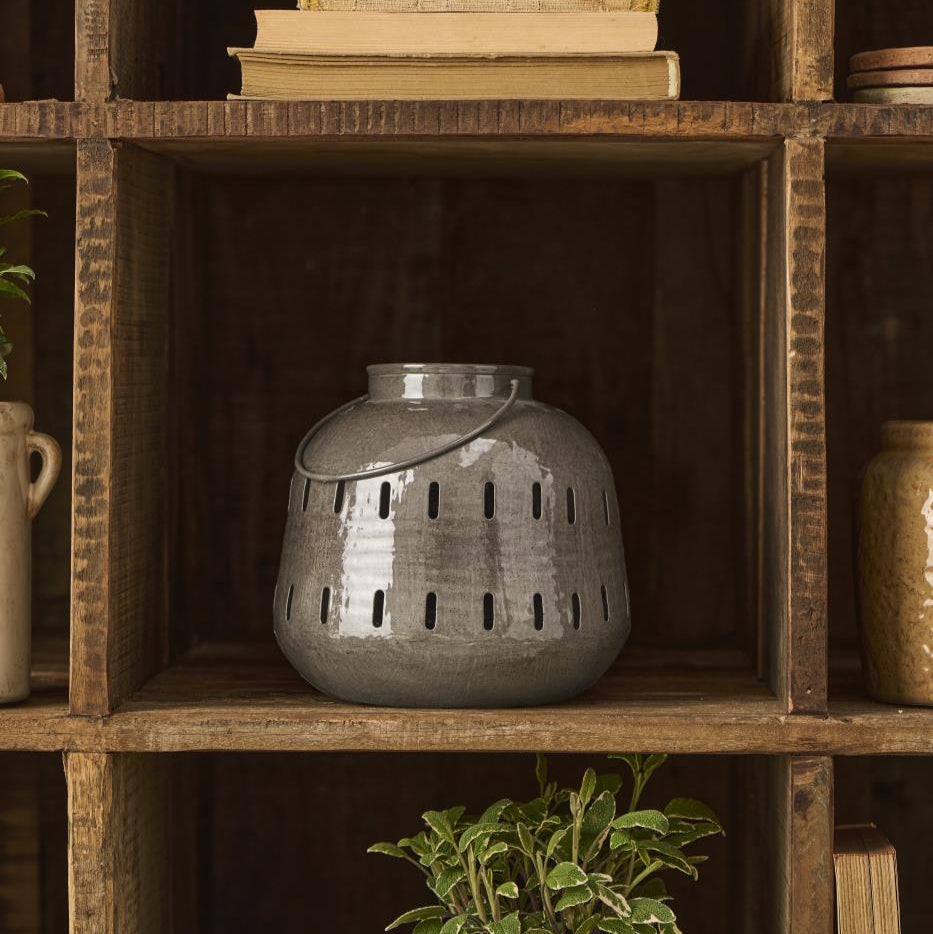 Lieferumfang: 1 Windlicht mit Lochmuster und Henkel aus Metall in grau von IB Laursen