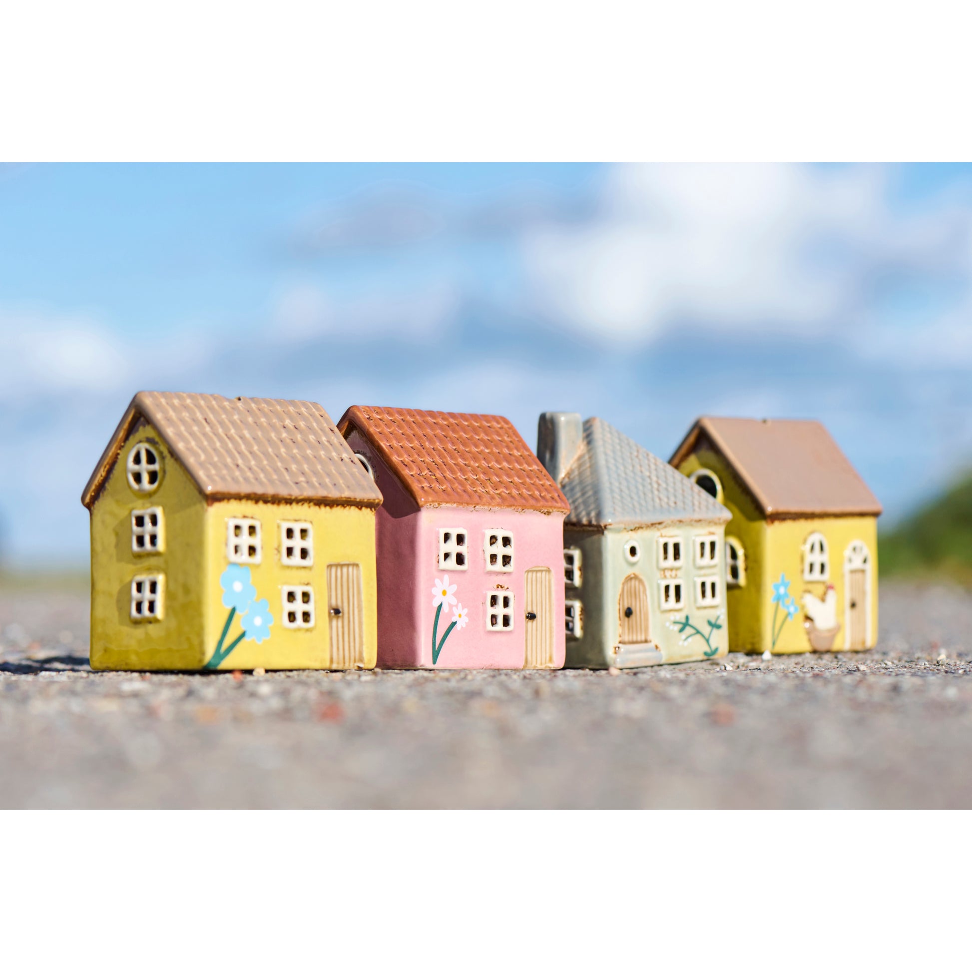 Entdecke die bunte Welt von Kopenhagens berühmtem Nyhavn – jetzt für dein Zuhause! Diese handgefertigten Keramikminiaturen bringen nordischen Charme und Gemütlichkeit in jeden Raum. Jedes dieser vier Farblich unterschiedlichen Häuser ist ein Unikat mit rustikalem Flair und wartet darauf, zum Leben erweckt zu werden: Stelle eine Kerze hinein oder verstecke eine kleine Lichterkette hinter den Fenstern für magisches Kerzenlicht. Ob einzeln als Blickfang oder arrangiert als charmantes kleines Häuschen-Viertel – diese liebevollen Keramikstücke schaffen sofort eine gemütliche, märchenhafte Atmosphäre.