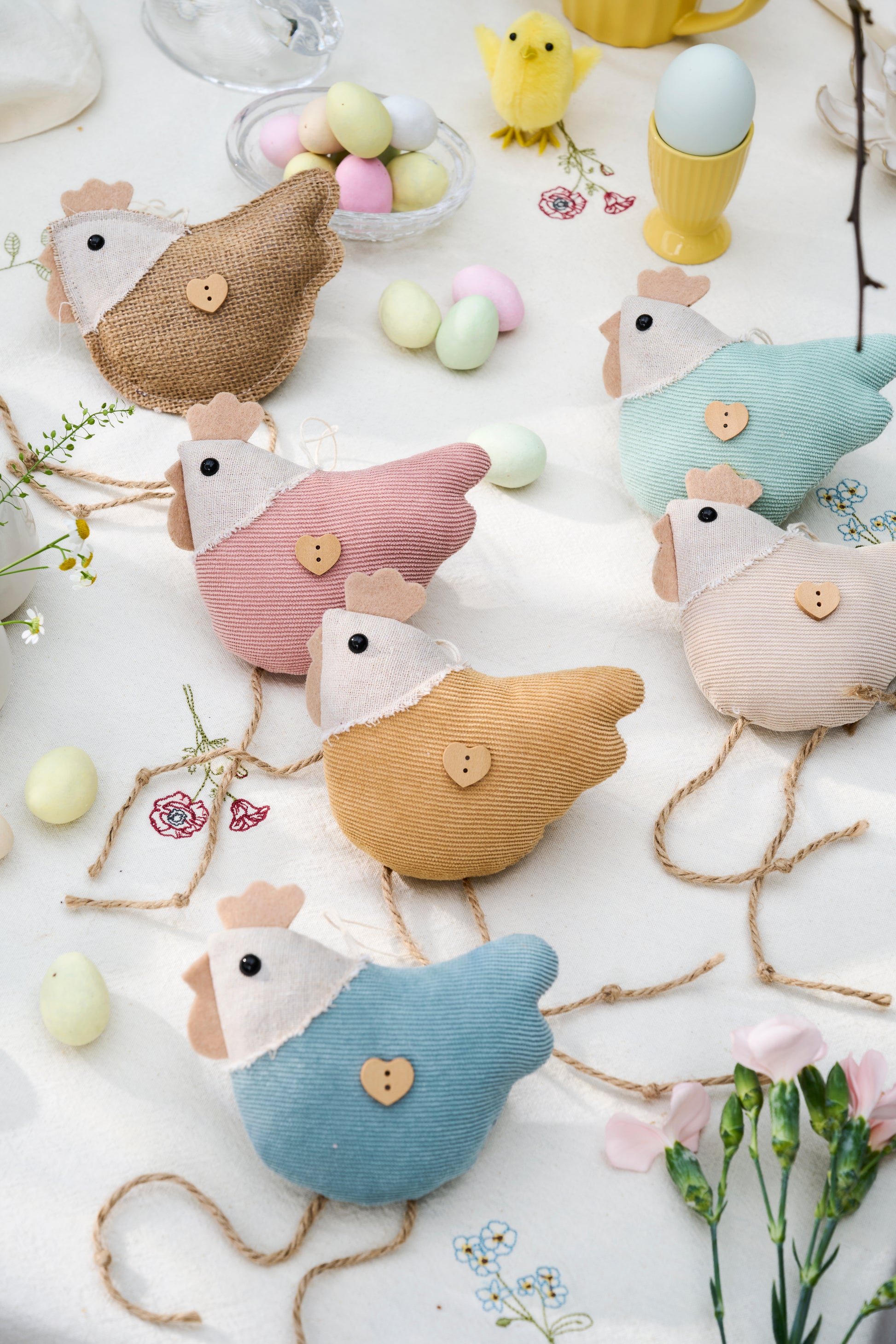 Süße Stoff-Hühner von IB Laursen mit unverwechselbar langen Beinen – perfekt zum Aufhängen! Jedes Huhn kommt in einer von sechs lebendigen Farben daher und trägt stolz einen winzigen Herzknopf als liebevolles Detail. Diese verspielten Stoffgesellen bringen Wärme und Charme in jeden Raum und sind ideal als Deko-Highlight oder kleines Geschenk für Hühner-Fans.