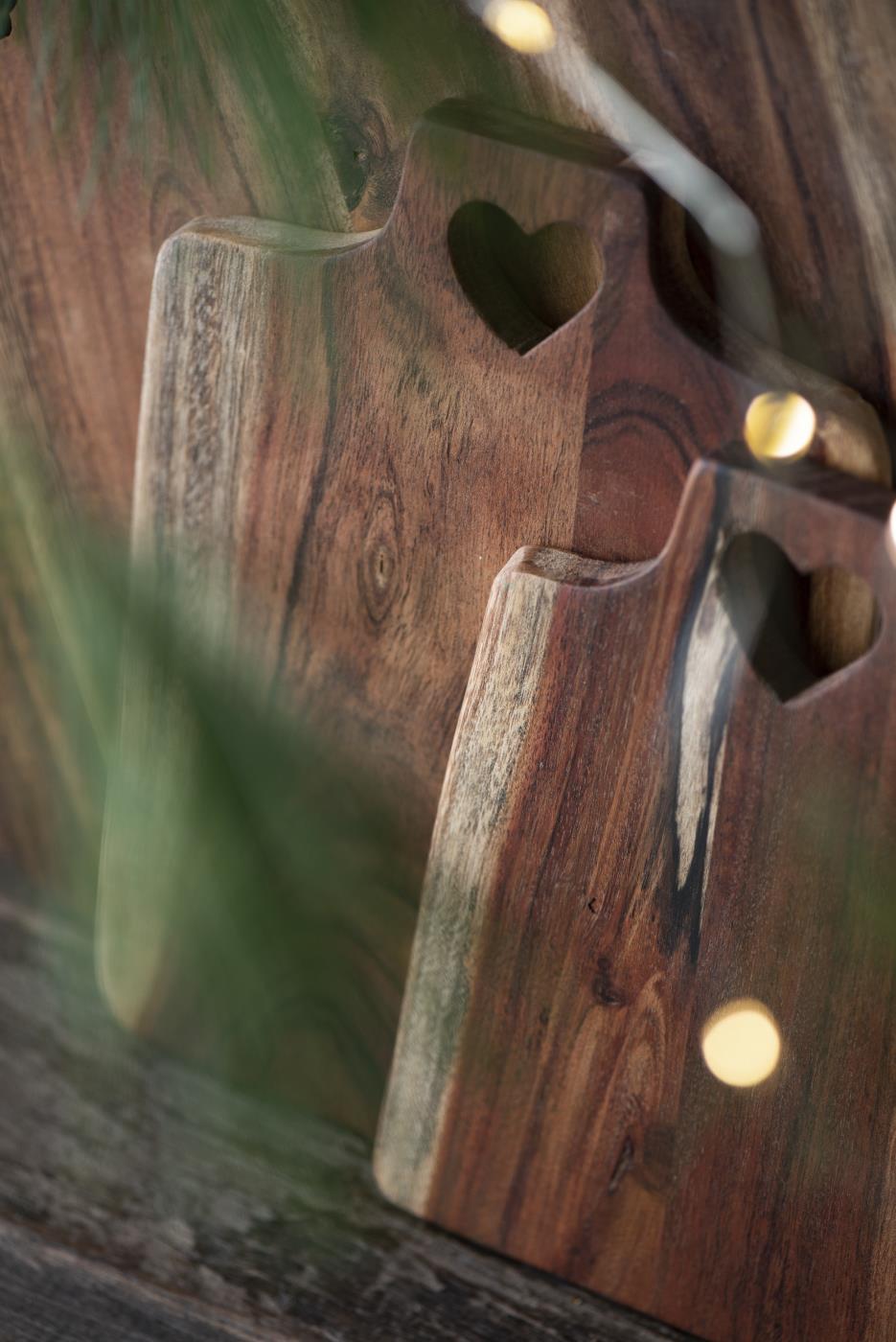 Das Schneidbrett aus geöltem Akazienholz der Unika Serie von IB Laursen besticht durch seine natürliche, unebene Kantenführung und das charakteristische Herzloch, das sowohl als dekoratives Element als auch als praktische Aufhängemöglichkeit dient. Es eignet sich hervorragend zum Schneiden, Servieren und als stilvolles Frühstücksbrett. Dank seiner hochwertigen Verarbeitung ist es zudem eine ansprechende Geschenkidee.