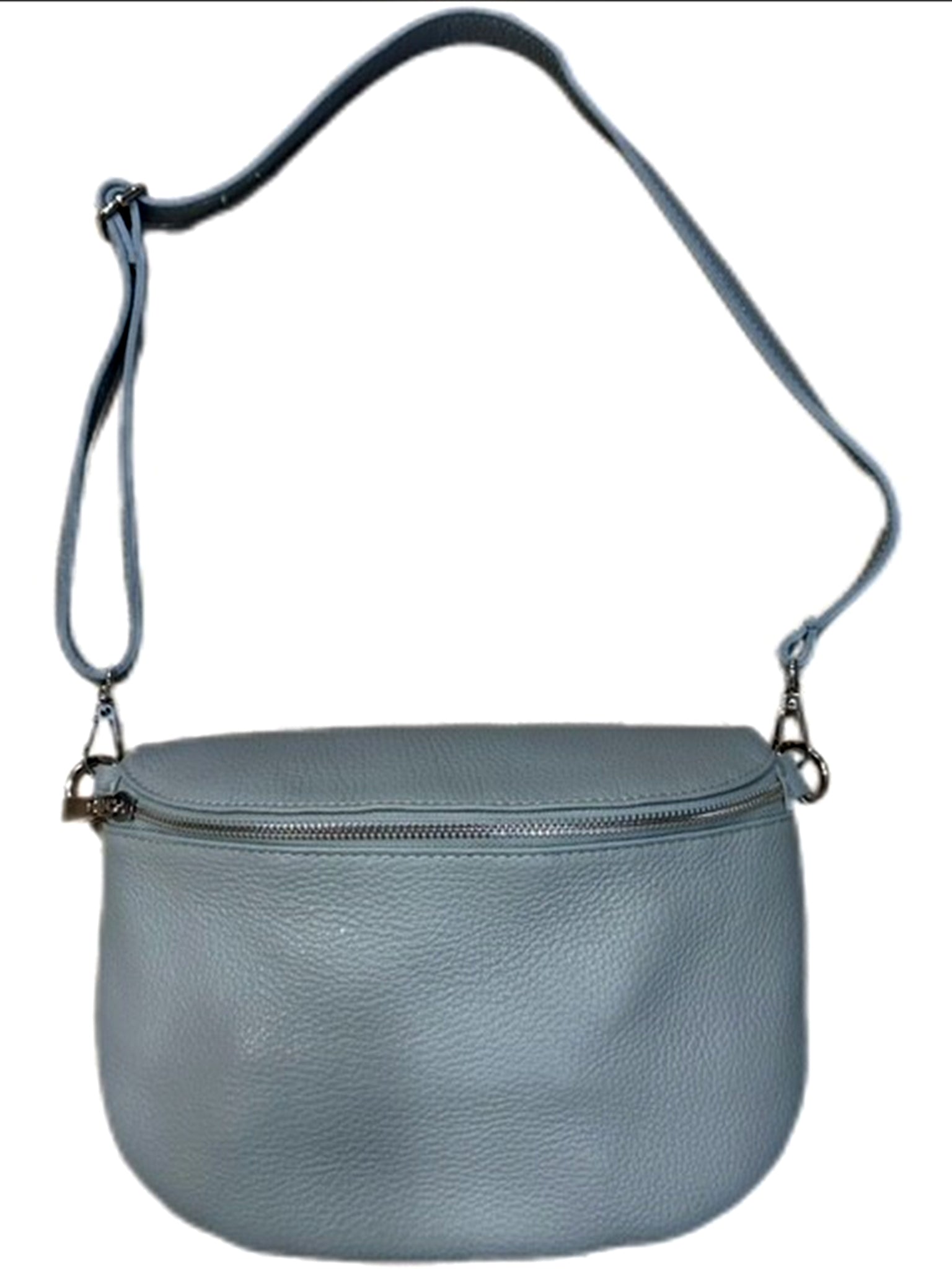 Die hellblaue Leder Crossbag Handtasche vereint edles Design mit durchdachter Funktionalität. Gefertigt aus hochwertigem Leder, bietet sie mit ihrem verstellbaren Riemen individuellen Tragekomfort. Das weiche Innenfutter schützt Ihre Wertgegenstände, während eine Innentasche und ein zusätzliches Reißverschlussfach auf der Rückseite für praktische Organisation sorgen. Ideal für Damen, die Wert auf Stil und Alltagstauglichkeit legen.