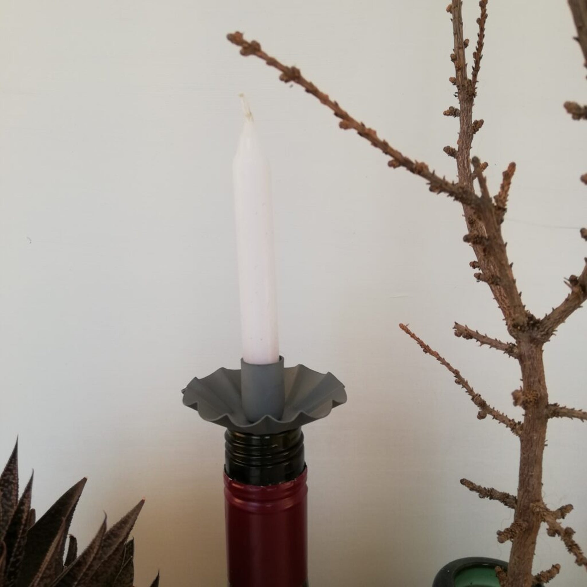 Lieferumfang: 1 x Madleys Flaschen Kerzenhalter passend für Stabkerzen 2,2 cm aus Metall in grau