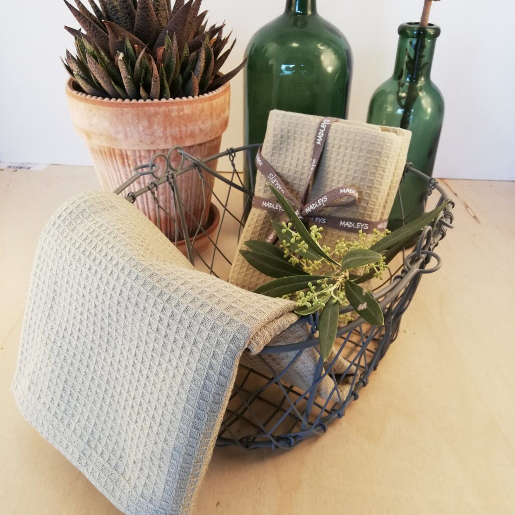 Lieferumfang: 1 x Madleys Geschirrtuch mit Wabenstruktur in Eukalyptus ohne weitere Deko